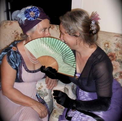 And I’m having fun with it! Here I am catching up on some of the latest ‘on-dits’ at a recent Georgette Heyer Regency party. Ten women played ladies at an elegant soirée inspired by the marvellous, totally fluffy fiction of Ms Heyer. All guests prepared period costumes, language worksheets, a short performance piece, and some period dishes or drinks for an elegant supper.
